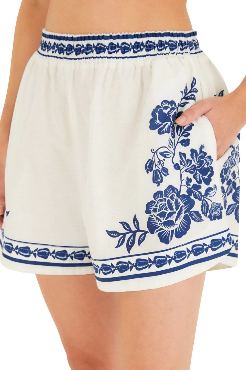 Com estampa floral azul sobre fundo branco, essa peça traz uma atmosfera delicada e sofisticada, ideal para ocasiões casuais ou passeios ao ar livre.